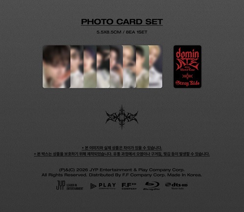 [初回限定特典] 韓国音楽 Stray Kids (ストレイキッズ) World Tour [dominATE SEOUL] Blu-ray (予約 発売日:2026.01.19以後) STRAY KIDS - WORLD TOUR [DOMINATE SEOUL] BLU-RAY ※製作社の事情によって製品情報や特典内容、発売日が変更されることがありますのでこの点予めご了承下さい。 ※予約商品と一般の商品を一緒にご注文になった場合は、予約商品が入荷した後にまとめて配送致しますので、ご了解お願い致します。 ★商品発送完了の後の商品キャンセルの場合は往復送料が請求されますので、この点予めご了承下さい。 ■ メディア:韓国盤Blu-ray ■ 発売日:2026.01.19以後 ■ 音 声:韓国語 ■ 字 幕:日本語、韓国語、英語、中国語、スペイン語 ■ 構 成:2DISC+フォトブック44P+折りたたみポスター1種+フォトスタンド+インスタントフォト8種+フォトカード8種 ■ 時 間:約282分 ■ リージョンコード:【ALL】 ※一般の日本のブルーレイ・プレイヤーでは、リージョンコード【A】あるいは【ALL】のものだけが視聴できます。 ★ご注意★ この商品はBlu-Ray専用プレイヤーで使用可能で、一般のDVDプレイヤーでは使用できません。 DVDプレイヤー使用の理由での返品は不可能ですので注文の際、予めご確認ください。 ■ Blu-ray Info *初回限定フォトカード8種セット贈呈 特典は初回限定に挿入されますので、予約期間以後のご注文の商品には特典がない場合もあります。 * OUT CASE Size: 15.2x20.1cm ※ 本ケースは商品を保護するための保護材であり、流通過程で発生する汚れや破損による交換および返金には応じかねます。 1. PHOTOBOOK Size: 14x18.9cm / 44p 2. DIGIPACK Size: 14x18.9cm 3. 2 DISCS ASPECT: 1080i AVC 1.78 : 1 WIDE SCREEN COLOR AUDIO: KOREAN DTS-HD MASTER AUDIO 2.0 (48KHZ / 24BIT) SUBTITLES: KOREAN, ENGLISH, JAPANESE, CHINESE, SPANISH REGION CODE: ALL FREE (A,B,C) DURATION: DISC 01 ABOUT 120 MINS, DISC 02 ABOUT 162 MINS 4. FOLDED POSTER Size: 28x18.5cm / 1EA 5. PHOTO STAND Size: 15x10cm / 1EA 6. INSTANT PHOTO SET Size: 5.5x8.5cm / 8EA 1SET 7. PHOTO CARD SET Size: 5.5x8.5cm / 8EA 1SET ■ Track List DISC1 (Blu-ray) [PART 1] 01. MOUNTAINS 02. 歌い手 03. JJAM 04. District 9 05. Back Door 06. Hold my hand (ハン) 07. Youth (リノ) 08. そうやって、ゆっくり、僕たち (スンミン) 09. So Good (ヒョンジン) 10. Chk Chk Boom 11. TOPLINE 12. Super Bowl 13. COMFLEX 14. 楽 15. twilight 16. Lonely St。 17. Social Path (Feat. LiSA) (Korean Ver.) 18. Railway (バンチャン) 19. HALLUCINATION (アイエン) 20. Unfair (フィリックス) 21. ULTRA (チャンビン) 22. 死んでみよう 23. ITEM 24. DOMINO 25. 神メニュー 26. 特 27. VENOM 28. MANIAC DISC2 (Blu-ray) [PART 2] 01. I Like It 02. CASE 143 + MY Pace 03. Stray Kids 04. MIROH 05. Chk Chk Boom (Festival Ver.) 06. Star Lost 07. Haven [FOCUS CAM 〈MOUNTAINS〉] 08. Bang Chan CAM 09. Lee Know CAM 10. Changbin CAM 11. Hyunjin CAM 12. HAN CAM 13. Felix CAM 14. Seungmin CAM 15. I.N CAM BEHIND THE SCENES 16. VCR BEHIND THE SCENES 17. REHEARSAL BEHIND THE SCENES 18. D-DAY BEHIND THE SCENES