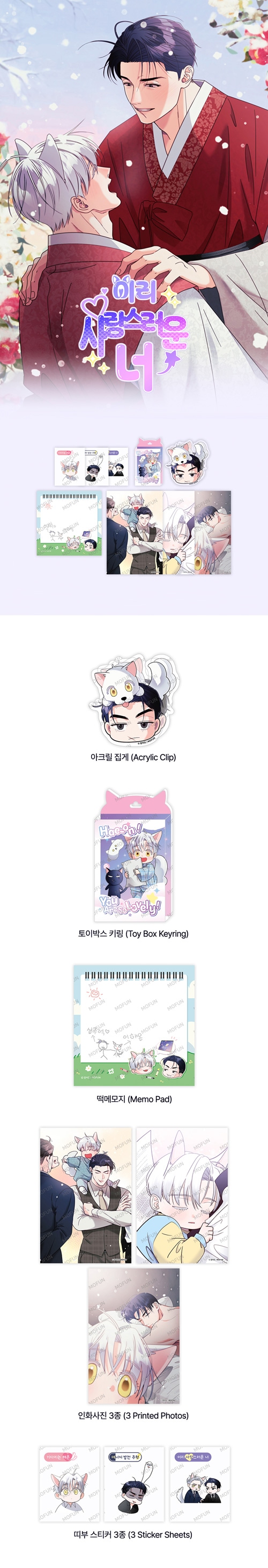 [特典贈呈] 韓国キャラクターグッズ 「こんなにかわいいアイツ」 ヘオンの成長SET (予約 発売日:2026.05.30以後) ※製作社の事情によって製品情報や特典内容、発売日が変更されることがありますのでこの点予めご了承下さい。 ※予約商品と一般の商品を一緒にご注文になった場合は、予約商品が入荷した後にまとめて配送致しますので、ご了解お願い致します。 ★商品発送完了の後の商品キャンセルの場合は往復送料が請求されますので、この点予めご了承下さい。 ☆この商品は銀行振り込みやカード決済など先払いで決済して頂いてから商品発送になります。 ■ 発売日:2026.05.30以後 ■ 商品名:「こんなにかわいいアイツ」 ヘオンの成長SET ■ 構 成:アクリルクリップ+トイボックスキーリング+ブロックメモ+印画写真3種+ステッカー3種 ■ 素 材:ACRYLIC、PAPER ■ サイズ:アクリルクリップ 55x58mm、キーリング 35x50mm、ブロックメモ 90x90mm、印画写真 102x152mm、ステッカー 40x50mm ※ 大量生産のため、多少の印刷ずれ、裁断ミス、小さな埃などが発生する場合があります。 ※ 光の反射で確認される微細な傷や押し跡などは不良ではありません。 ※ 紙製品(フォトカード、ポストカードなど)の場合、素材の特性上、製造工程でスクラッチや傷、点などが生じることがあります。 ※ アクリル素材の特性上、細かなキズ・擦れ・気泡・反りなどが見られる場合がございますが、製造上避けられないものであり、不良品・交換対象外となります。 ※ 背景紙およびOPP袋は製品を保護するための包装材であり、配送過程で破れが発生する場合がありますが、交換・返品の対象外となります。 ☆ ご注意☆ ★ イメージ写真と実際の商品とは色合いなど少し違う場合もあります。