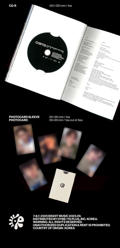 韓国音楽 CORTIS (コルティス) - 1st EP 「COLOR OUTSIDE THE LINES」 (ランダム発送/CD+フォトブック120P+フィルムシート3種+フォトカード1種) CORTIS - 1ST EP [COLOR OUTSIDE THE LINES] ★商品発送完了の後の商品キャンセルの場合は往復送料が請求されますので、この点予めご了承下さい。 *すべての構成品のイメージはバージョンごとに異なっております。 ■ メディア:韓国盤 ■ 発売日:2025.09.09以後 ■ ジャンル:KPOP ■ 構 成:1CD+フォトブック120P+フィルムシート3種+フォトカード1種(全5種の中1種ランダム) ■ Track List DISC1 (CD) 01. GO! 02. What You Want 03. FaSHioN 04. JoyRide 05. Lullaby