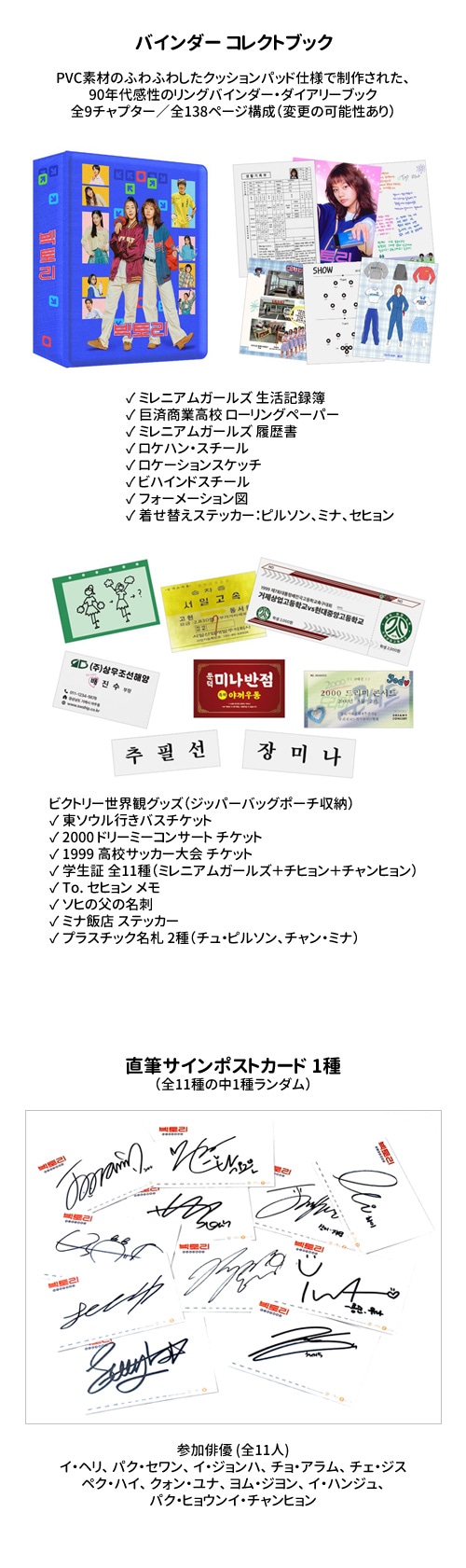 ★クーポン使用例外商品★ [ファンディング] 韓国映画 ヘリ、パク・セワン主演 「ビクトリー」 Blu-ray Cheer-up BOX SET (予約 発売日:2026.03.27以後) ※製作社の事情によって製品情報や特典内容、発売日が変更されることがありますのでこの点予めご了承下さい。 ※予約商品と一般の商品を一緒にご注文になった場合は、予約商品が入荷した後にまとめて配送致しますので、ご了解お願い致します。 ★商品発送完了の後の商品キャンセルの場合は往復送料が請求されますので、この点予めご了承下さい。 [ファンディング期間 2026.01.16 ~ 2026.02.15 12時まで] ■ 発売日:2026.03.27以後 ■ 商品名:「ビクトリー」 Blu-ray Cheer-up BOX SET ■ 音 声:韓国語 ■ 字 幕:韓国語 ■ 時 間:本編119分+付加映像 ■ 構 成:2DISC+シナリオ集&ストーリーボードブック+バインダーコレクトブック+直筆サインポストカード1種(全11種の中1種ランダム) ■ リージョンコード:【A】 ※一般の日本のブルーレイ・プレイヤーでは、リージョンコード【A】あるいは【ALL】のものだけが視聴できます。 ★ご注意★ この商品はBlu-Ray専用プレイヤーで使用可能で、一般のDVDプレイヤーでは使用できません。 DVDプレイヤー使用の理由での返品は不可能ですので注文の際、予めご確認ください。