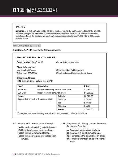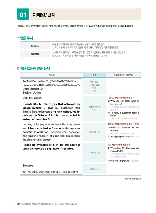韓国英語教材 2026 HACKERS ハッカーズ TOEIC PART 7 集中攻略 777 RC (リーディング) ★商品発送完了の後の商品キャンセルの場合は往復送料が請求されますので、この点予めご了承下さい。 ■ 発刊日:2026.02.05 ■ 規 格:188*257 / 460P ■ 著 者:HACKERS語学研究所 ■ 出版社:HACKERS語学研究所 ★この本は韓国語で書かれています。 ■ Book Info 最新の出題傾向を反映した7つのタイプ別攻略法と7回分の模擬試験で、 PART 7を完全攻略! 1. 最新の出題傾向と難易度を完全に反映したPART 7【実戦模擬試験7回分】&【複数文書集中模擬試験3回分】で、実戦感覚を最大限に高めます。 2. 【7つの問題タイプ別攻略法】を通して、PART 7に登場する各問題タイプを効果的に攻略できます。 3. 【文章タイプ別出題パターン】により、PART 7に出題される文章タイプを体系的に学習できます。 ■ 目次 書籍の構成および学習方法 TOEIC紹介 PART 7 出題傾向 自分のPART 7弱点克服 学習プラン 正解の根拠が一目で分かる文章タイプ別出題パターン 01 Eメール/手紙 02 メッセージ・会話文 03 フォーム 04 広告 05 記事 06 案内文 07 公告 08 回覧 09 複数文書 PART 7 解答時間を短縮する7つの問題タイプ別攻略法 タイプ01 主題/目的問題 タイプ02 5W1H問題 タイプ03 Not/True問題 タイプ04 推論問題 タイプ05 意図把握問題 タイプ06 文挿入位置問題 タイプ07 同義語問題 PART 7 実戦力を養う模擬試験7回分+複数文書3回分 第1回 実戦模擬試験 第2回 実戦模擬試験 第3回 実戦模擬試験 第4回 実戦模擬試験 第5回 実戦模擬試験 第6回 実戦模擬試験 第7回 実戦模擬試験 第1回 複数文書集中模擬試験 第2回 複数文書集中模擬試験 第3回 複数文書集中模擬試験 正答表 Answer Keys 解答用紙 Answer Sheet 解説集 ― 正答・訳・解説(別冊)